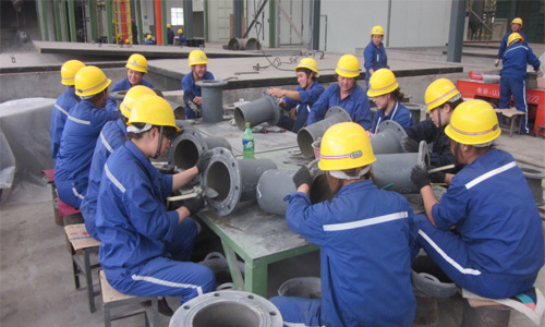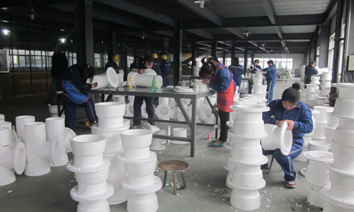 采用全封閉半自動(dòng)成型機(jī),直管部分整體成型,避免了半模成型膜片粘接產(chǎn)生橢圓。帶支管類管件支管部分整體成型。